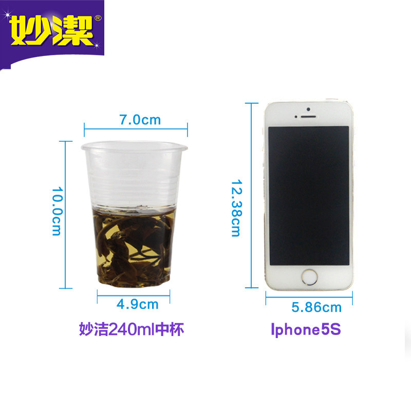 Miaojie disposable plastic cups 100 packs 240ml thickened transparent water cups 20 packs full box