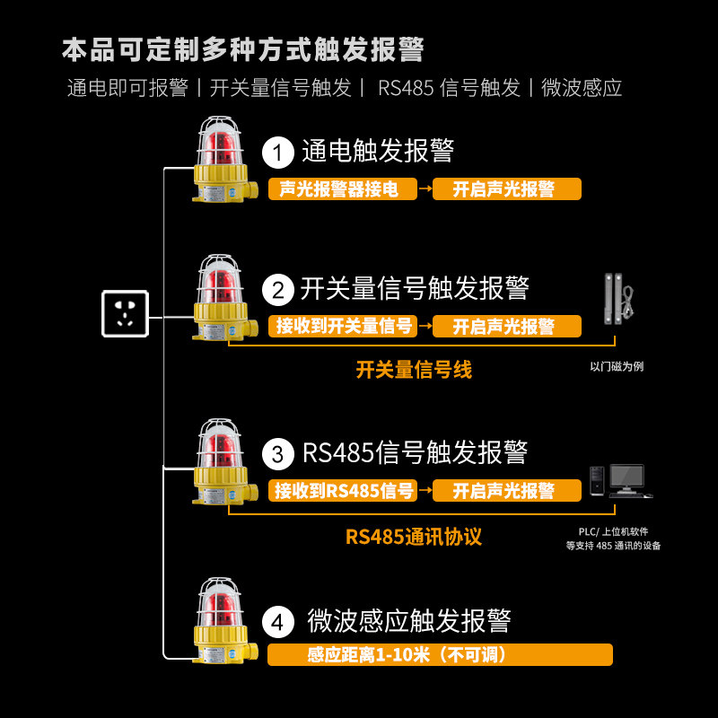 DC12V (policing voice) DC24V (policing voice) AC220V (policing voice) voice custom-made custom microwave induction alarm 485 Newsletter 1 way open