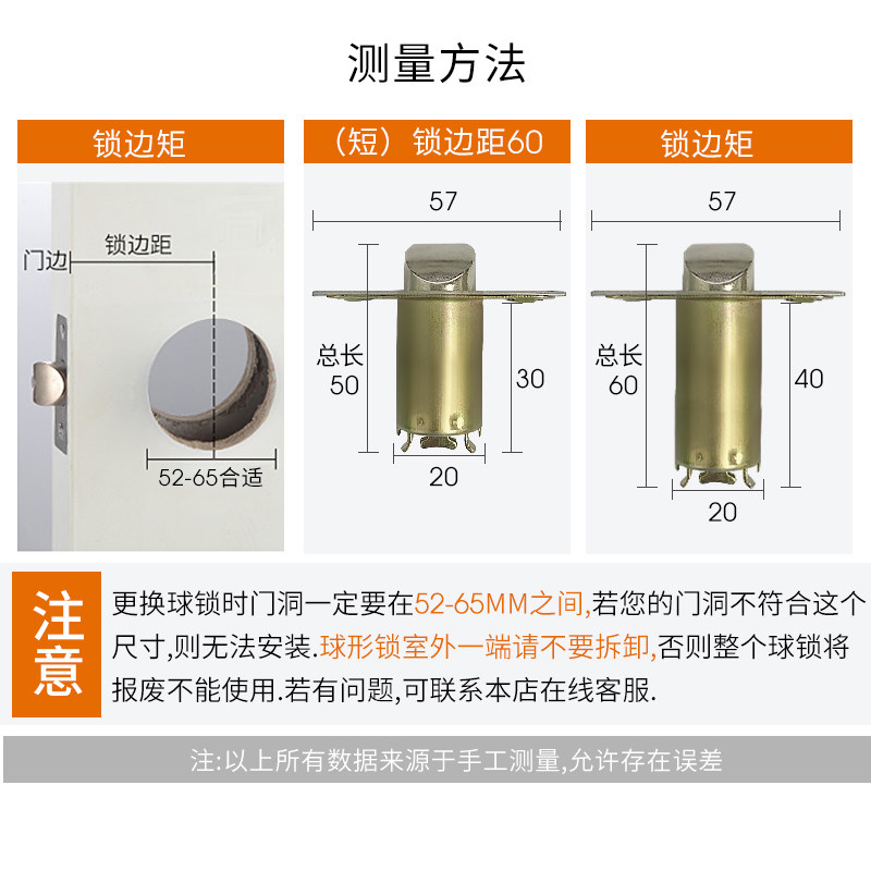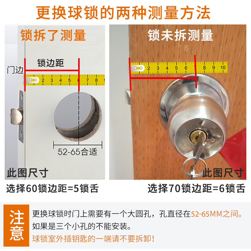 Le household door lock Indoor bedroom powder room universal stainless steel room spherical lock Solid wood door lock