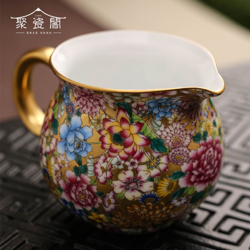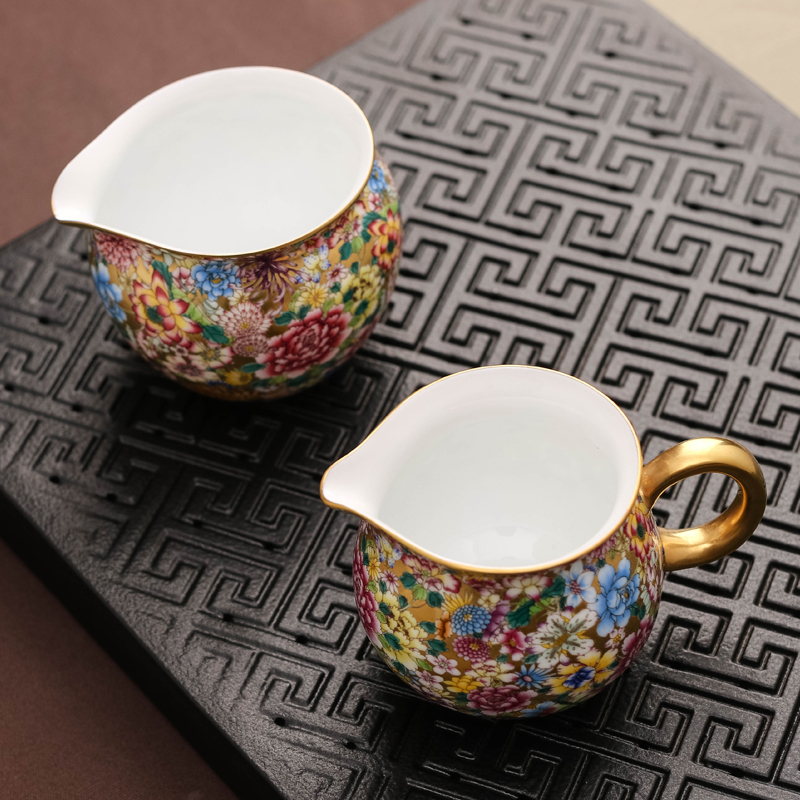 Poly Porcelain Cabinet Jingdezhen Dezhen Tea Leaf Jars Hand Hand-painted Ceramic Powder Colorful Flowers Tea Fair Cup Kongfu Tea Furniture