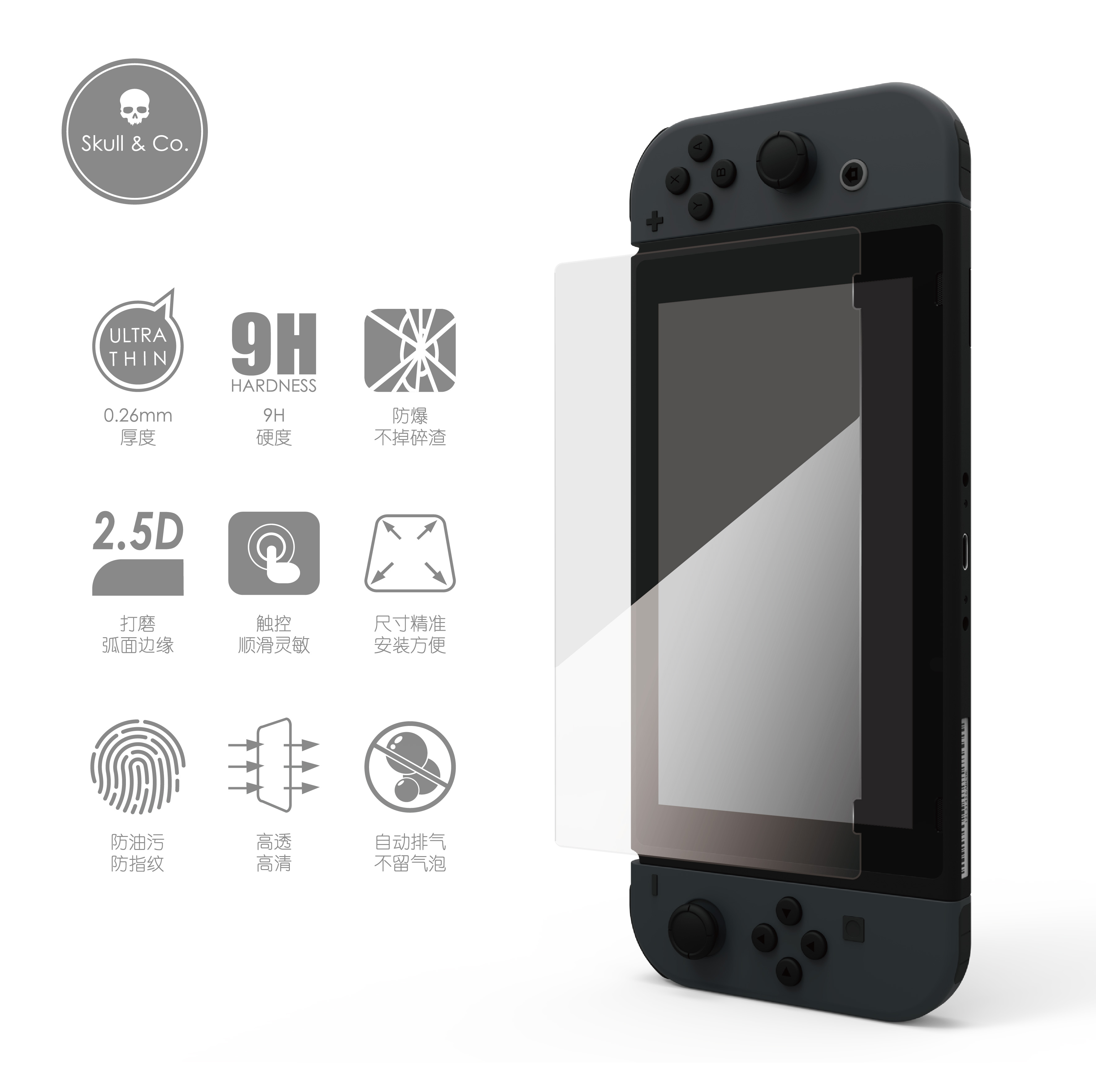 Skull & Co. Nintendo Switch Tempered Film Screen Protector Foil Ultra-thin 2.5D curved edge 9H hardness