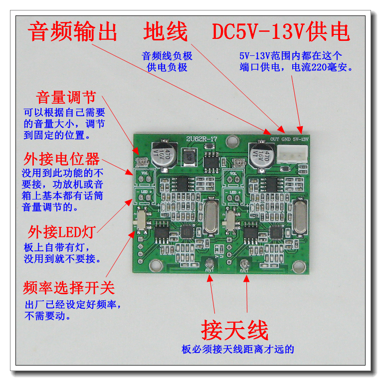 UHF wireless microphone microphone teaching machine speaker U-segment chip one drag two head wearing lavalier semi-finished circuit board