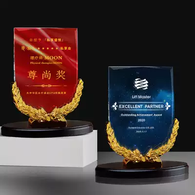 Wheat crystal trophy custom metal solid wood base authorization card Chamber of Commerce Council retirement memorial custom medal