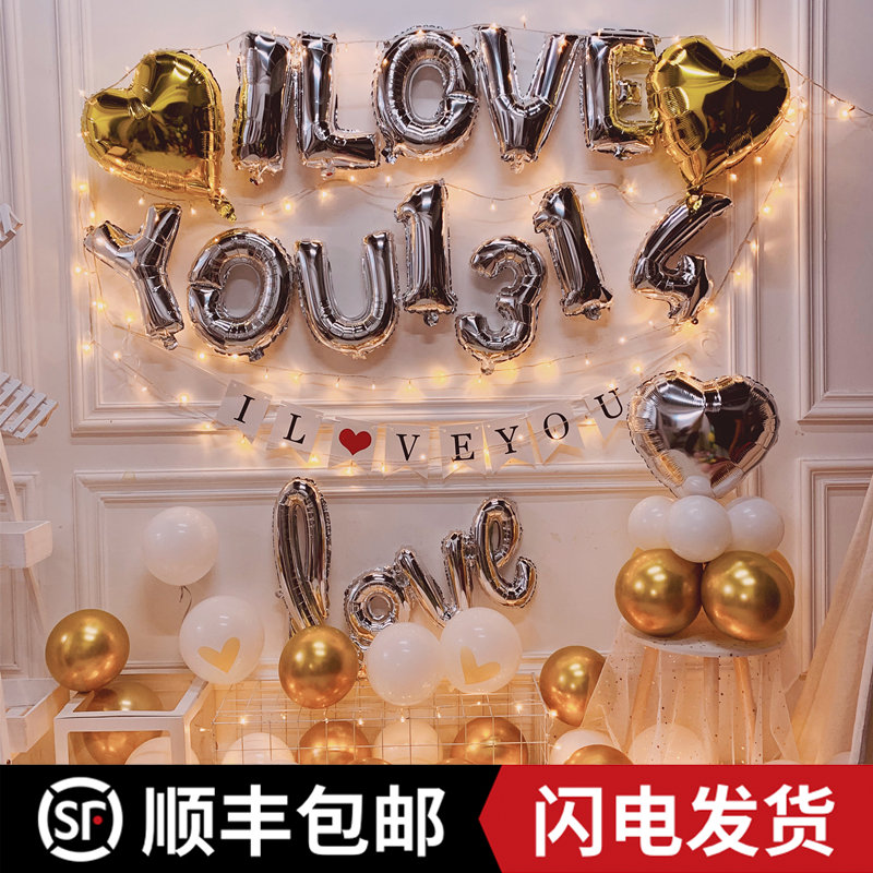 520 proposal balloon set Sweet wedding balloon set Happy wedding balloon set Black gold white tie love set romantic high-end set]520 petal set golden love petal set