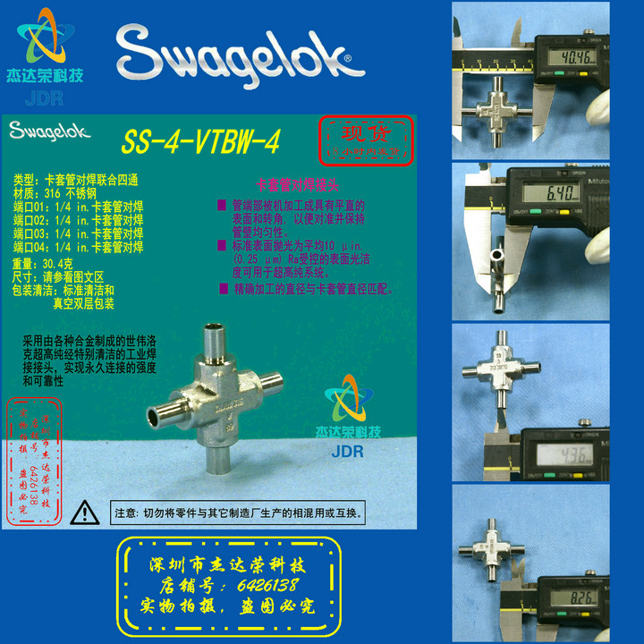 (SS-4-VTBW-4)Swagelok Butt-Welded Four Way 1, 4in. Swagelok Card Casing OD