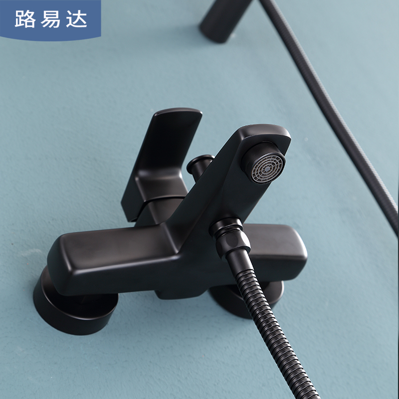 Luida black bathtub faucet Surface mounted wall mounted bathtub Full copper faucet shower Hot and cold shower set