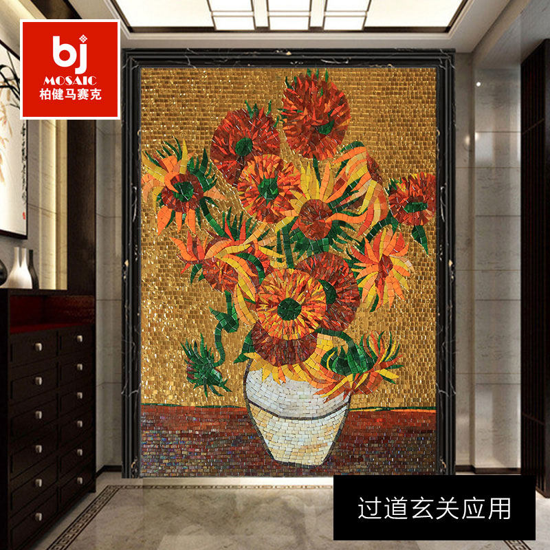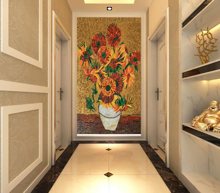 Van High Sunflower Eu Style Glass Mosaic Jigsaw Puzzle Genguan Aisle Dining Room Background Wall Art Tile Cut Painting