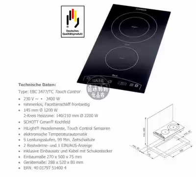 Germany imported rommelsbacher EBC 3477 TC embedded black crystal furnace touch 3400W