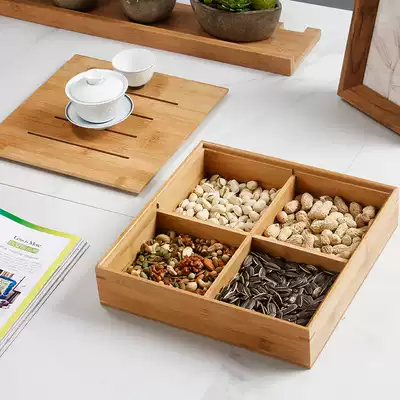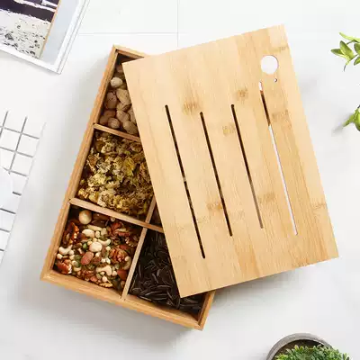 Dried fruit box split bamboo candy plate creative with lid fruit tray snack storage box put melon seed nut plate