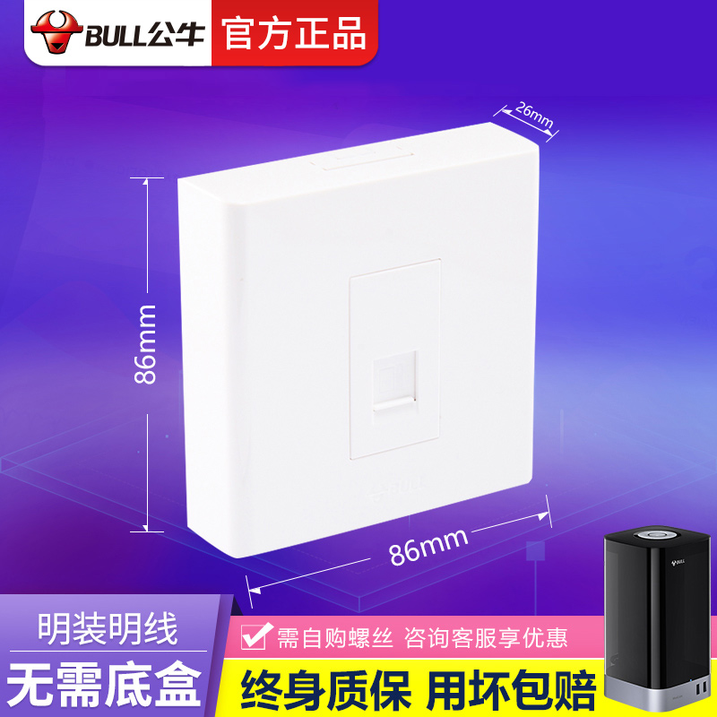 Bull open-mounted switch socket panel single-port one-digit telephone socket port telephone line socket open-end box home