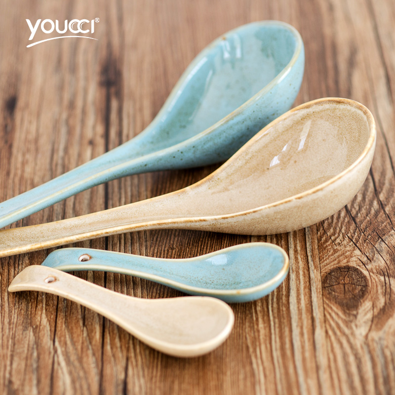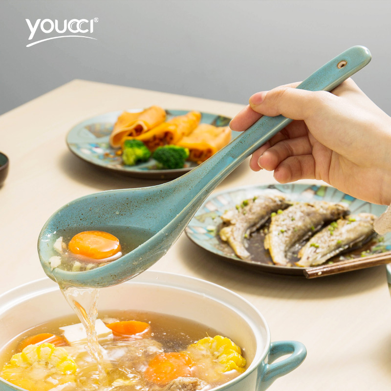 youcci ceramic large soup spoon Large spoon Household hotel long handle large porcelain soup spoon porridge spoon