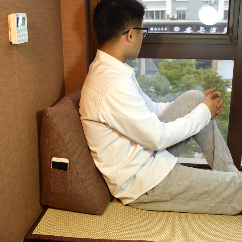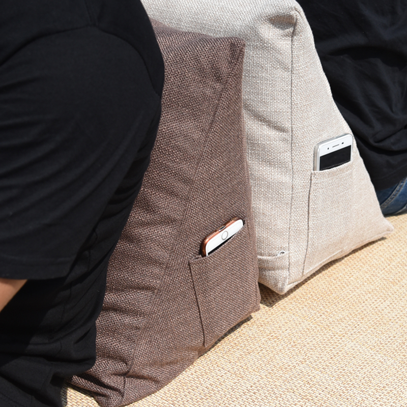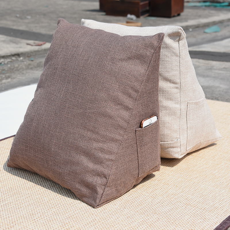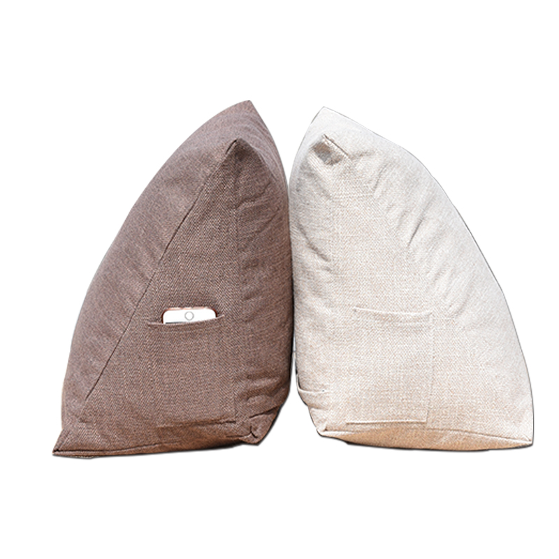 Triangular cotton linen leaning pillow can insert mobile phone hug backrest sofa with pillow waist cushion pure color floating window cushions leaning against pillows