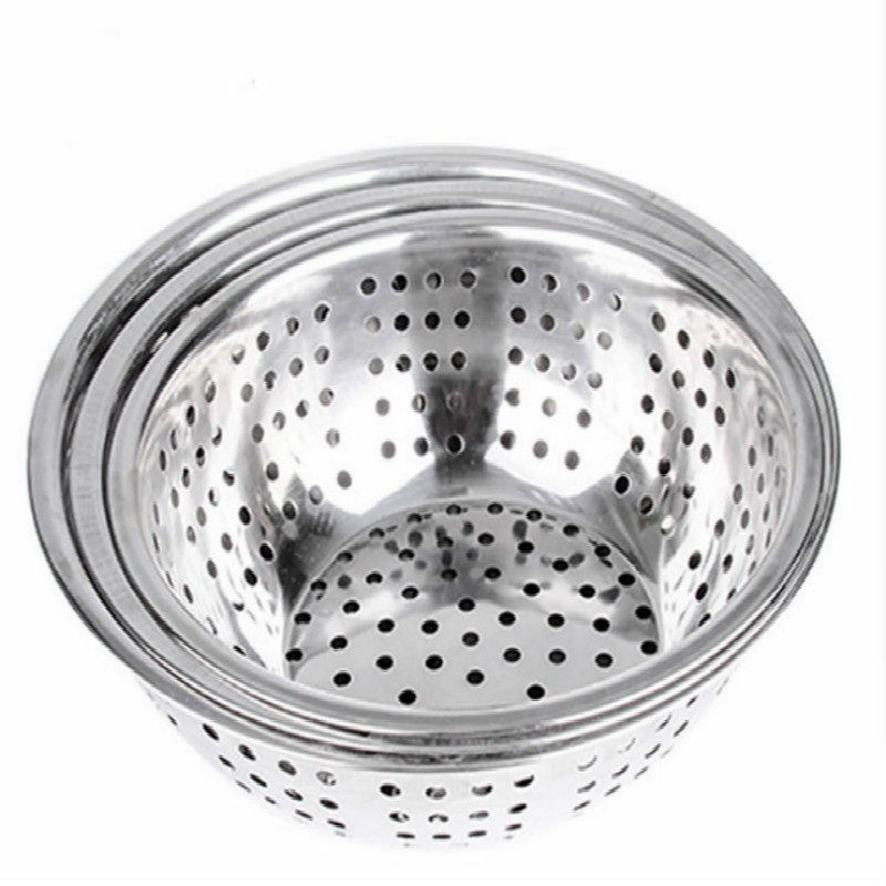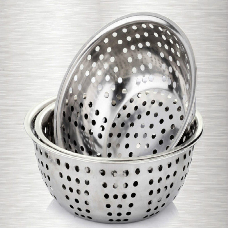 Stainless steel macroporous washed vegetable basin washout sieve deepening large drain basin special large eye fruit vegetable basket Leaching basin