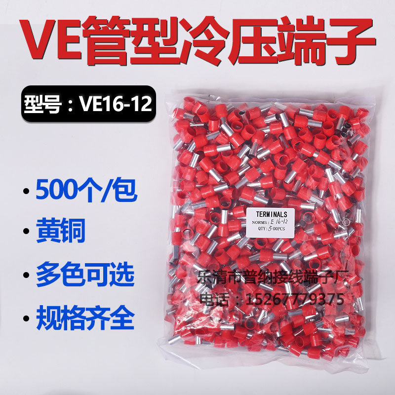 Punner direct VE16-12 cold pressure terminal tubular wiring terminal copper wiring terminal end-head needle-like insulation terminals