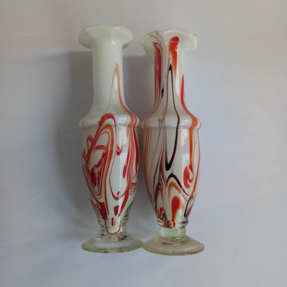 A pair of Wenge Period glazed wire drawing process Glass old vase 67 Decades of nostalgic old objects collection