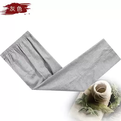 Linen trousers middle-aged and elderly men's cotton and linen casual pants elastic waist Tang suit spring and summer Chinese style loose