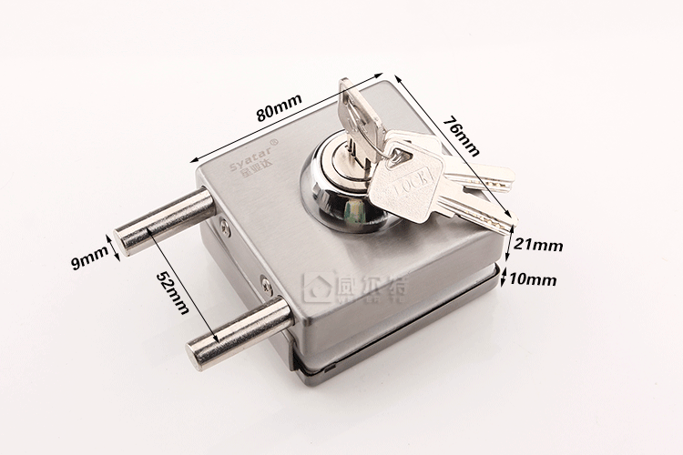 Stainless steel glass door lock Square sliding door pull door lock Central single and double door latch lock free drilling