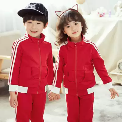 Kindergarten garden clothes spring and autumn school uniforms for primary school uniforms Red children's sports suits teacher uniforms Korean version