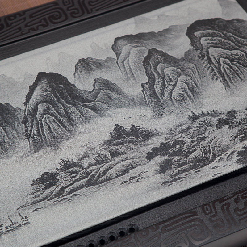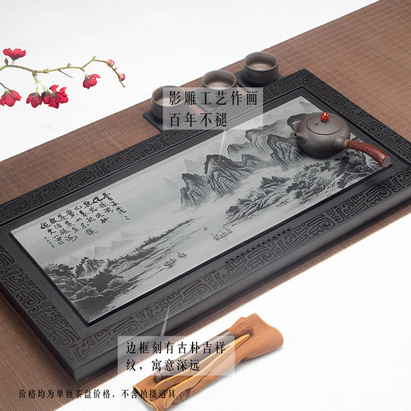 Photoengraving tea tray natural black gold stone tea sea large number small number stone tea tea tea set for home drainage tea Tawkin stone tea tray