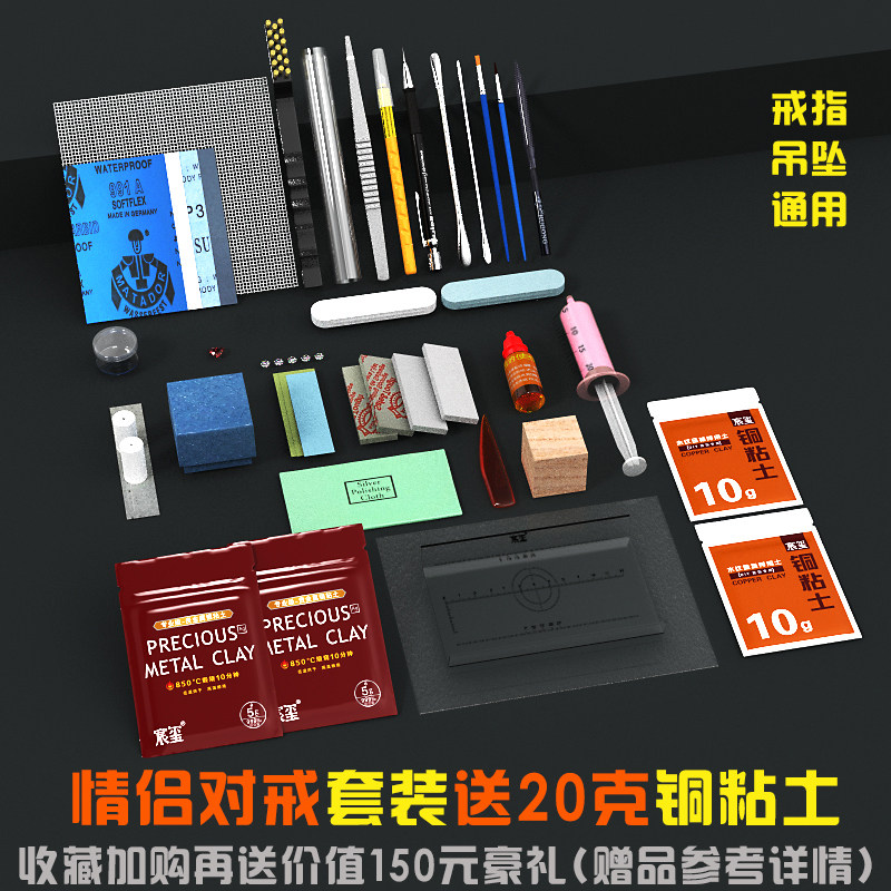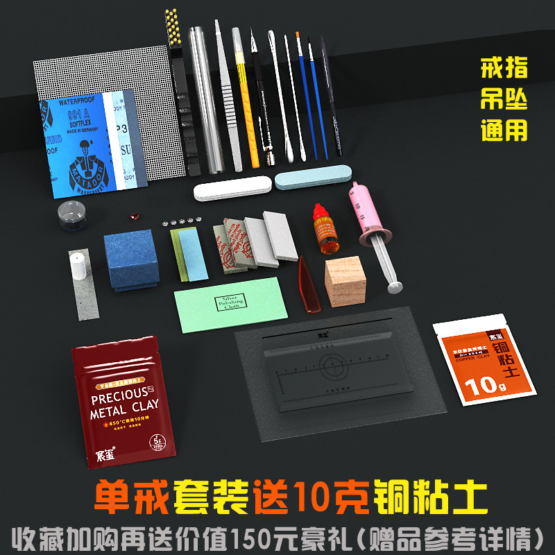 Ring Set (One Ring Core per Pack of Materials) Pendant Set (Contains One Pack of 5 G Material) Couple Ring (2 Packs of Materials 2 Ring Cores) Kiln Set Couple Set (Recommended) Open Ring Style Strip (Optional) Open Ring Goldworking Tool Set Firing Service