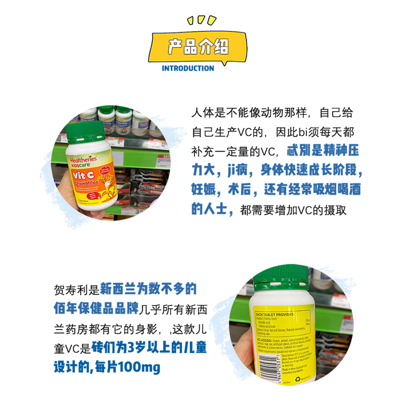 New Zealand Healeries Children's Vitamin Vitamin C VC Chewable Tablets Boost Immunity 70 Tablets