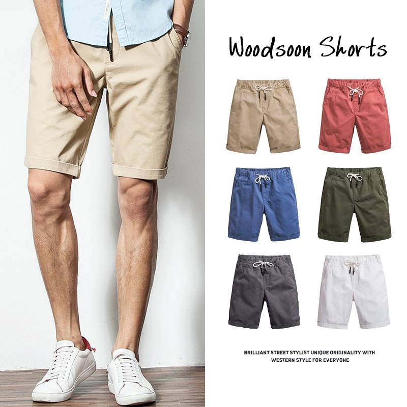 My speed shorts men's summer 50% pants pure colour pure cotton beach card with its Korean version of men's casual mid-pants