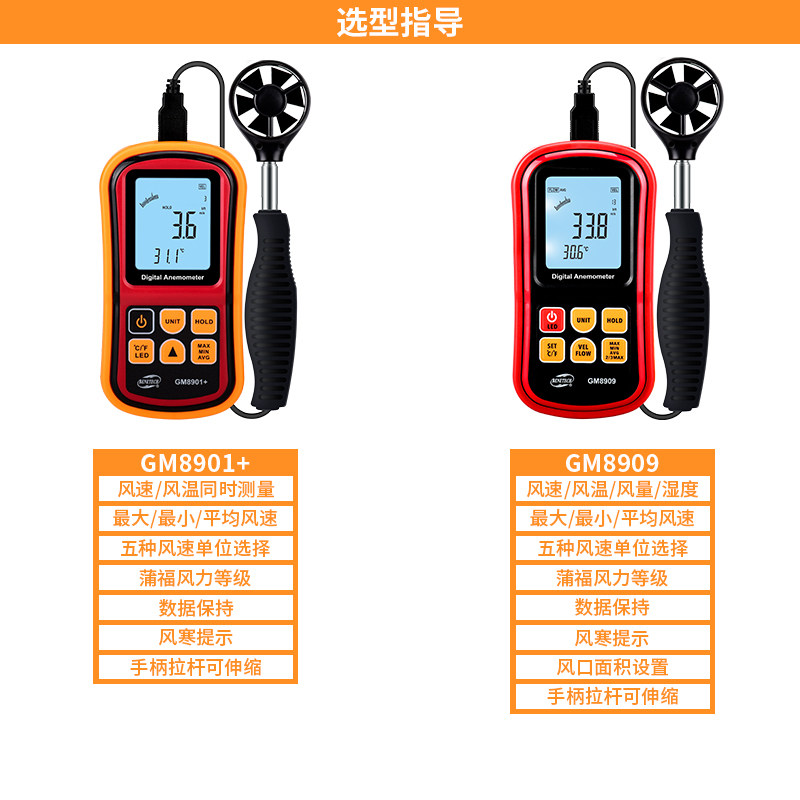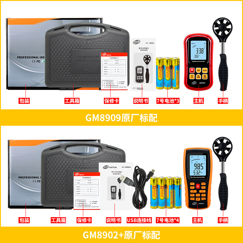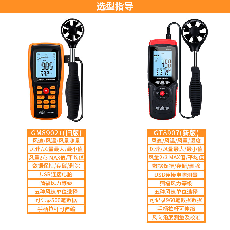 GM8901 standard (wind speed and temperature) GM8909 standard (wind speed and air volume and temperature) GM8902 standard (wind speed and air volume and temperature USB connection