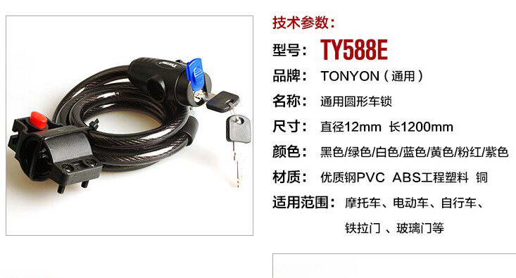 TONYON universal mountain bike road bike bicycle lock wire anti-theft color lock five-digit password lock to send lock frame