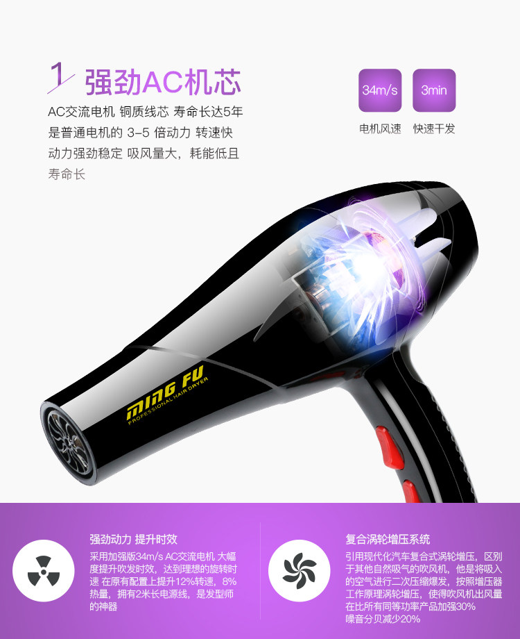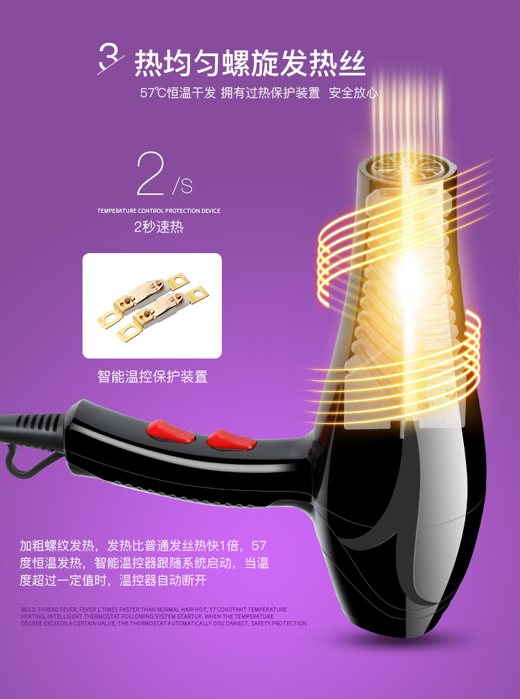 Hair Dryer Size Power Hair Salon Hair Dryer Home Hot and cold wind Blow Cylinder Rational shop without injury Large wind 3000