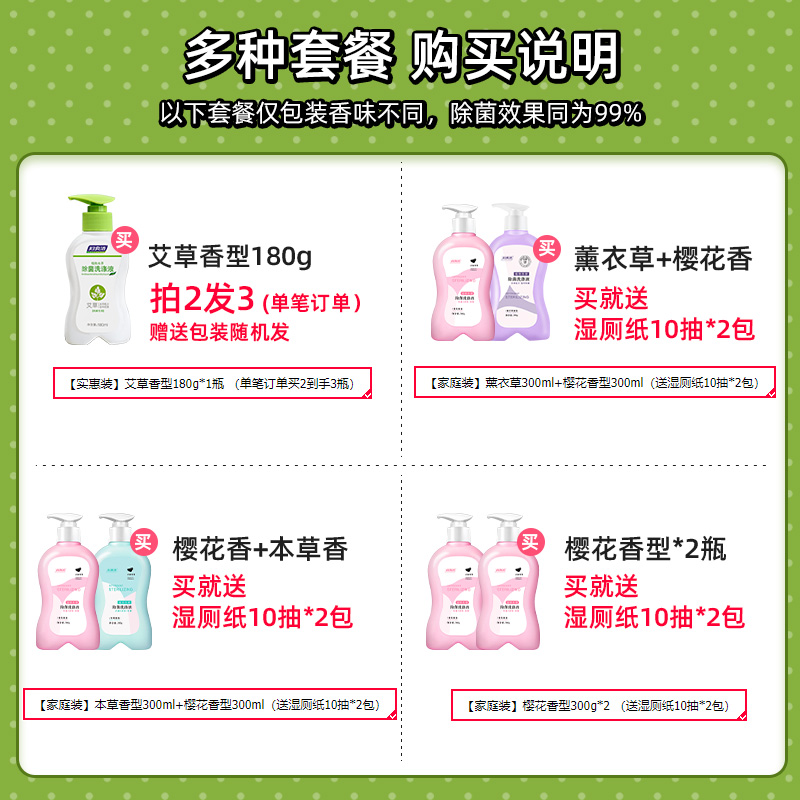 (Discount package)Materia Medica antibacterial type 90*1 bottle(buy one bottle and get one bottle free) (Affordable package)Wormwood fragrance type 180g*1 bottle (buy 2 to 3 bottles in a single order) (Recommended by Weia)