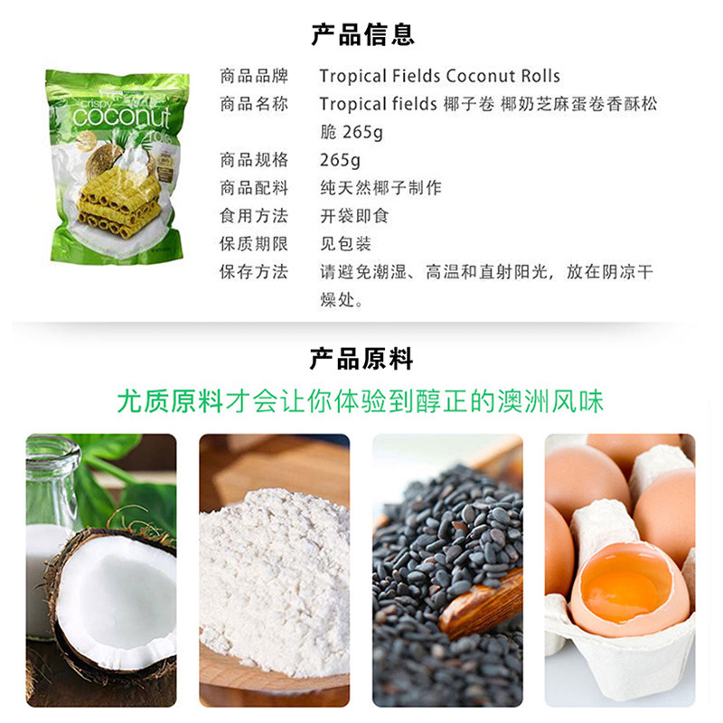 Kangaroo Chick Australia Straight Post Tropical Fields Coconut Rolls Egg Rolls 265g