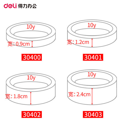 36mm*10y(9.1m) 8 rolls Bag-30415 24mm*10y(9.1m) 12 rolls Bag-30403 18mm*10y(9.1m) 16 rolls Bag-30402 9mm*10y(9.1m) 32 rolls Bag-30400 12mm*10y(9.1m) 24-roll Bag-30401