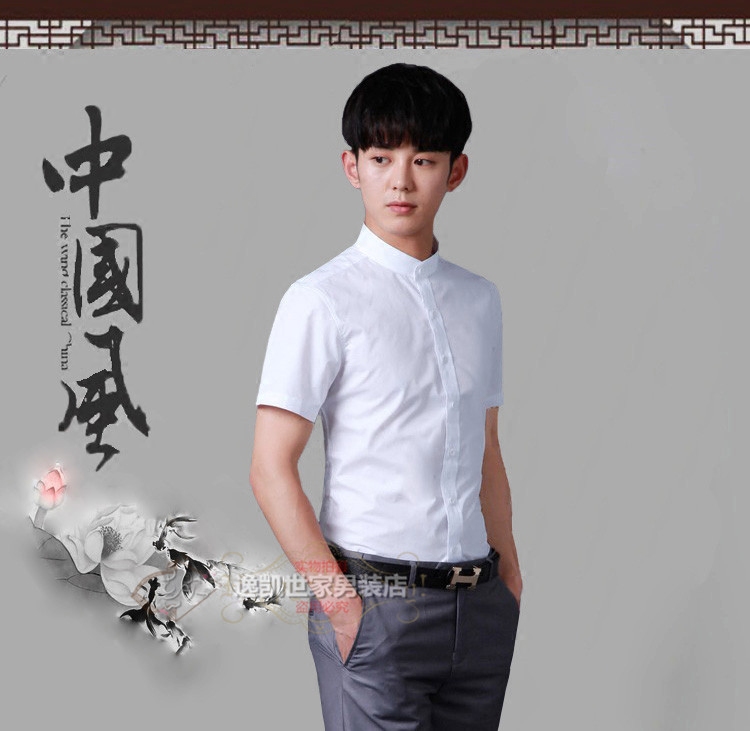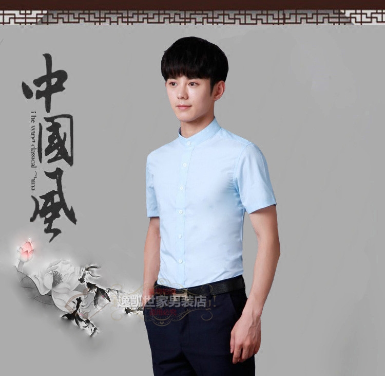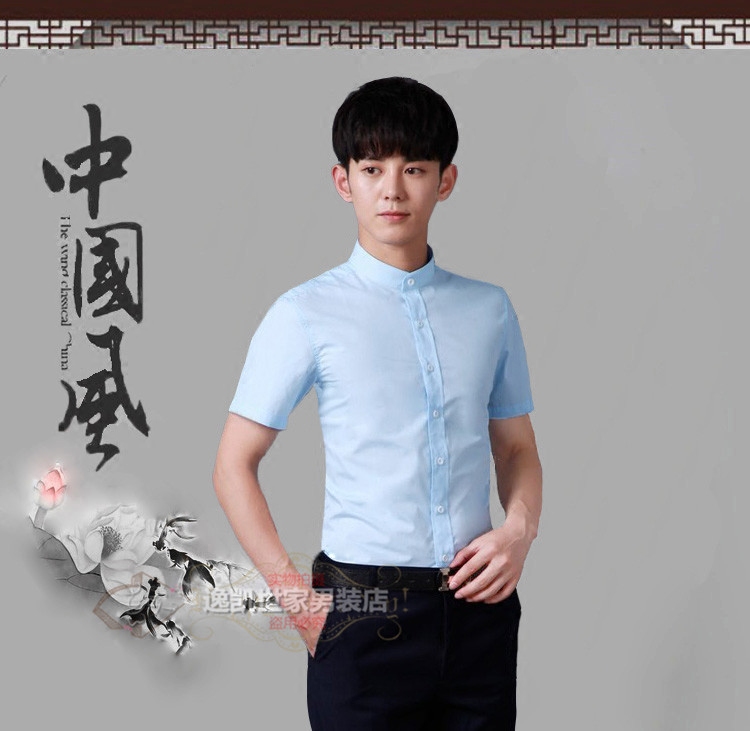 Summer slim fit short sleeve shirt male youth 50% sleeves large size size black upright collar shirt repaired with half sleeve inch shirt