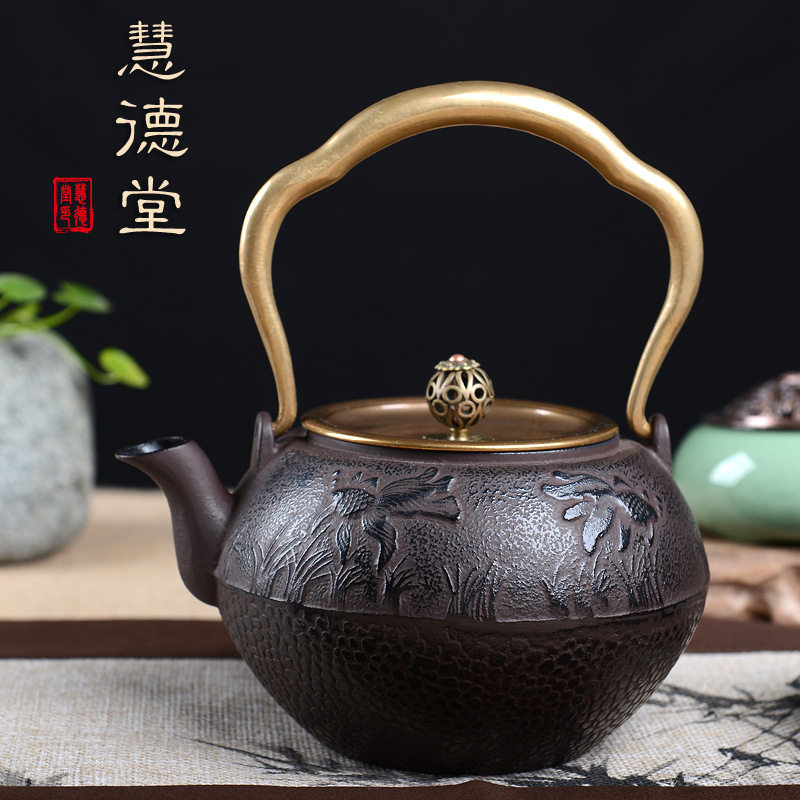Huide Tang cast iron pot Goldfish iron pot Japanese handmade iron pot Black crystal furnace special pot Health cast iron teapot tea set