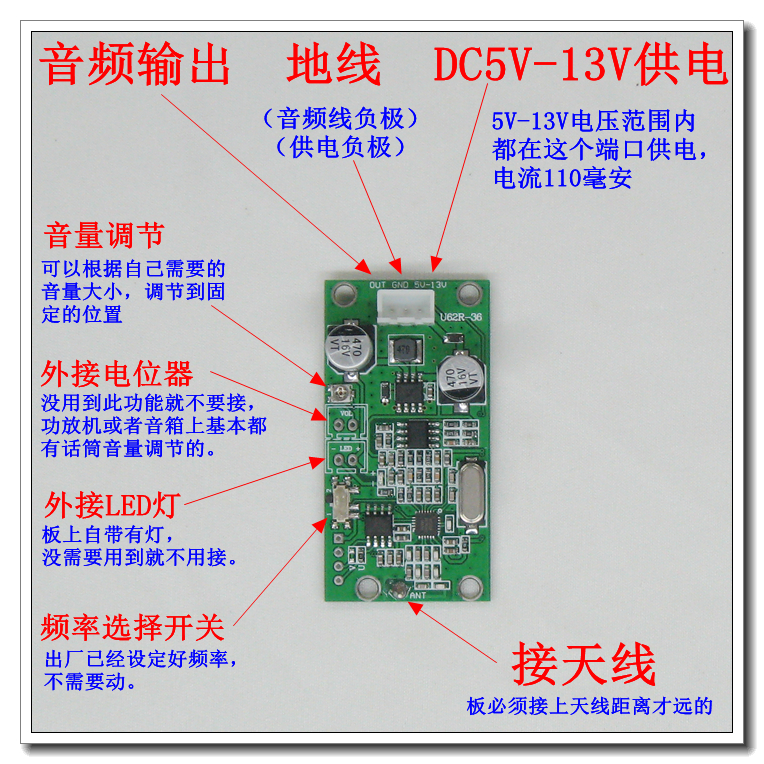UHF wireless microphone microphone teaching sound box power amplifier point song machine U section chip one drag a semi-finished circuit board