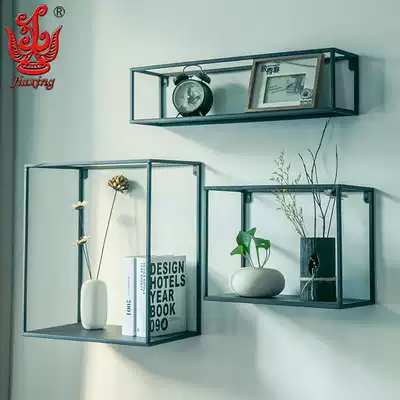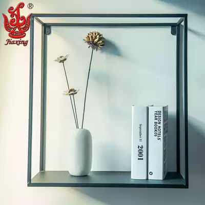 American industrial style wrought iron wall shelf decorative partition Simple living room background wall display rack bookshelf frame