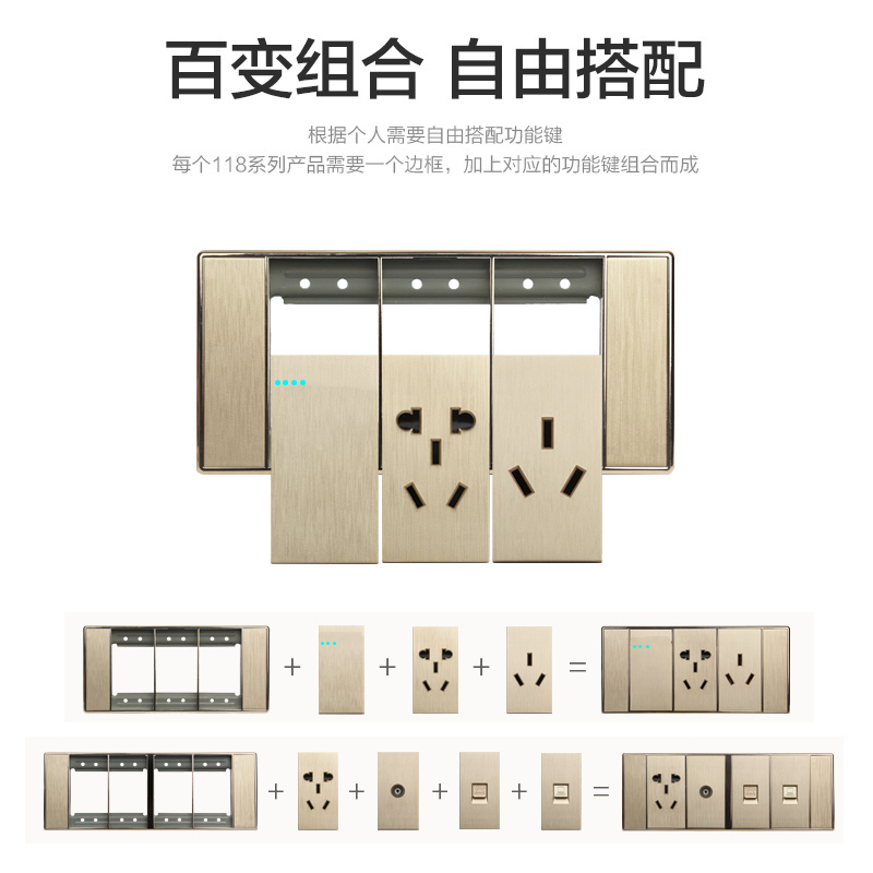 One panel TWO PANEL THREE PANEL FOUR PANEL FIVE HOLES MODULE 16A TRIPLE HOLE MODULE OPEN DOUBLE MODULE SMALL TWO-OPEN MODULE TV MODULE COMPUTER MODULE PHONE MODULE THROTTLE MODULE DIMMING MODULE ONE MORE