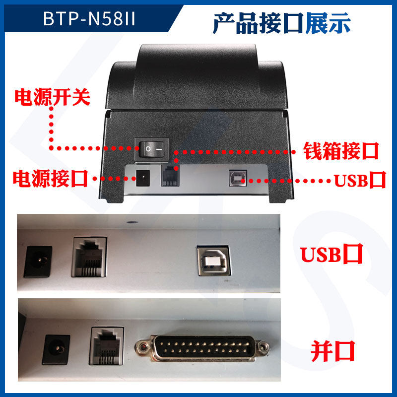 BTP-N58II USB port BTP-N58II alongside the port of the BTP-N58II