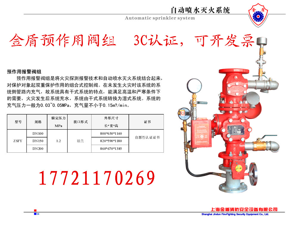 Shanghai gold shield fire pre-work with alarm valve ZSFY150-1 6 pre-action valve group 3C certified