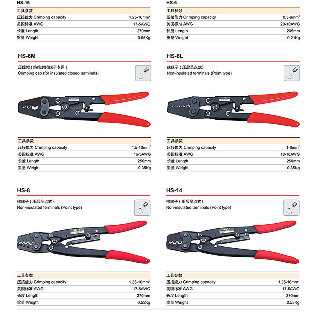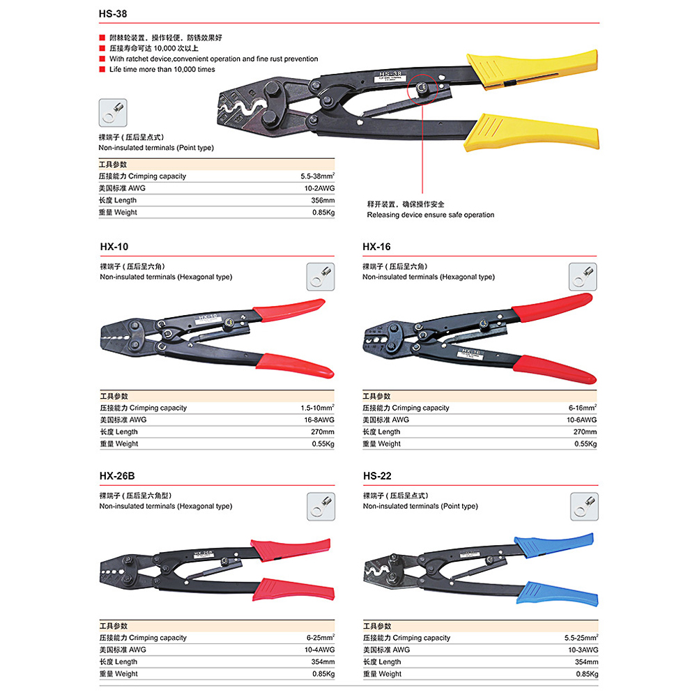 Huasheng SN-02C Labor-saving HSC HD cold press pliers hs-6l 8 16 terminal pliers 22 Crimping pliers 38