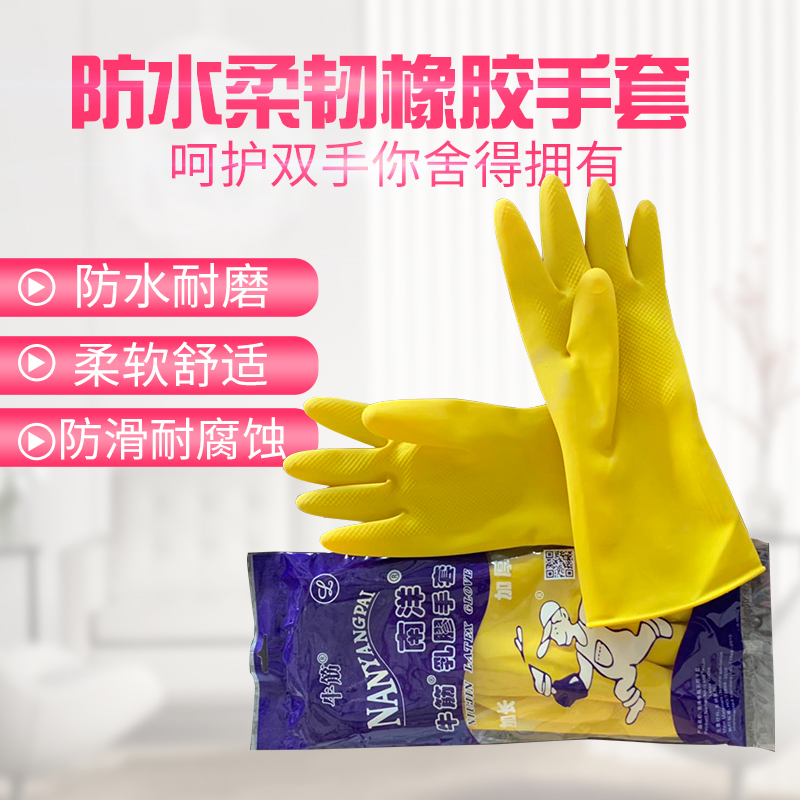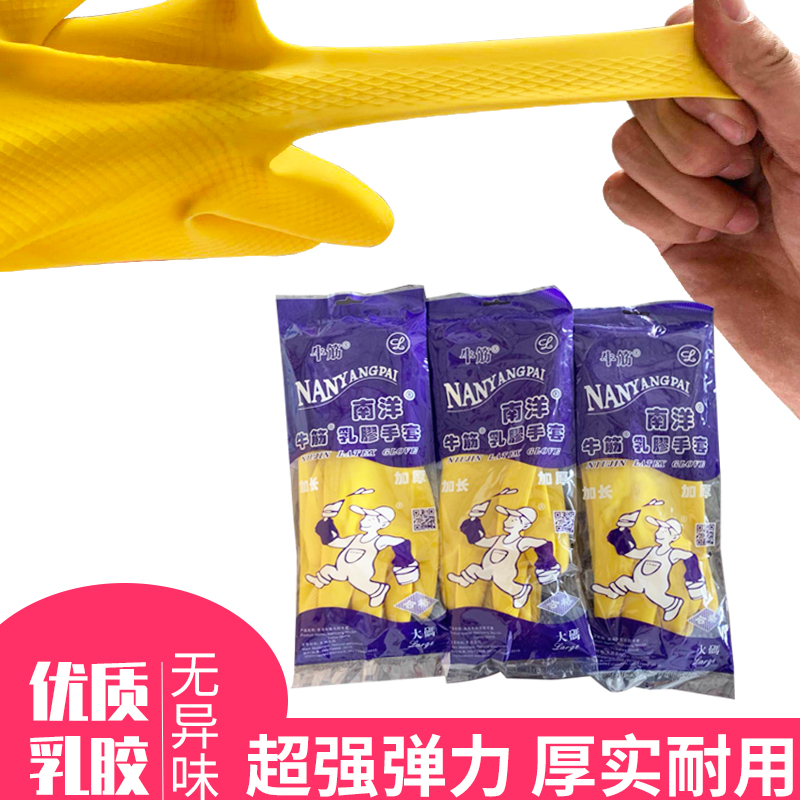 Latex Gloves Thickened Wear-proof Bull Gluten Dishwashing waterproof Lauprotect Rubber waterproof construction Private gloves Happy Wawa