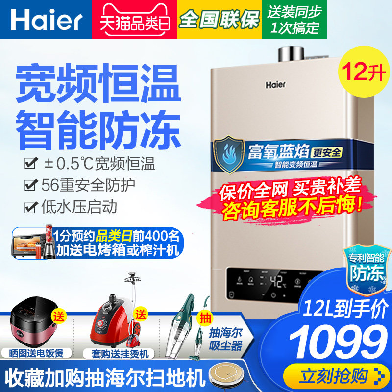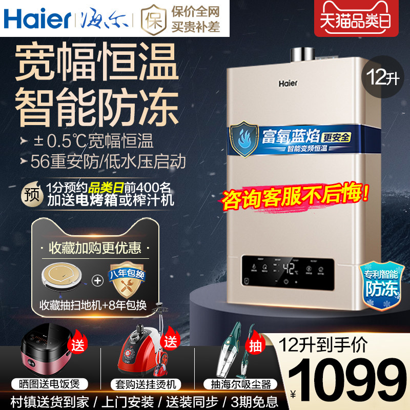 Haier gas water heater household gas 12 liters constant temperature bath shower electric intelligent instantaneous heat type strong row type
