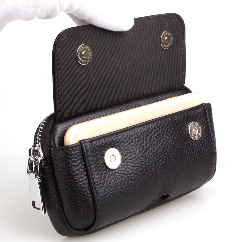 Men's 4 7 5 inches Apple 6S 8 cow leather mobile phone pocket wearing leather strap horizontal genuine leather casual multifunction small bag