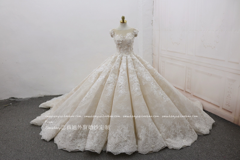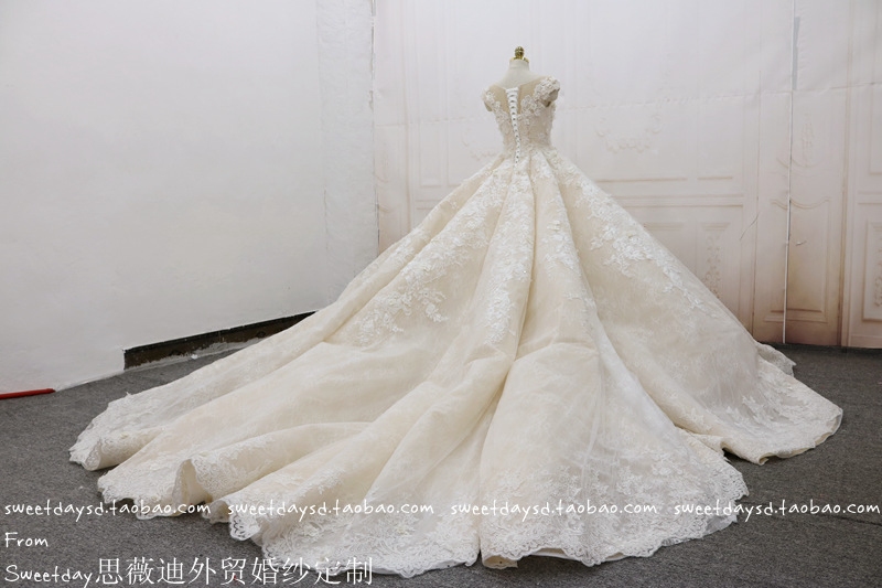 2022 new extravagant long trailing lace bridal bridal bridal temperament superior palace wind wedding ceremony main wedding dress-Taobao