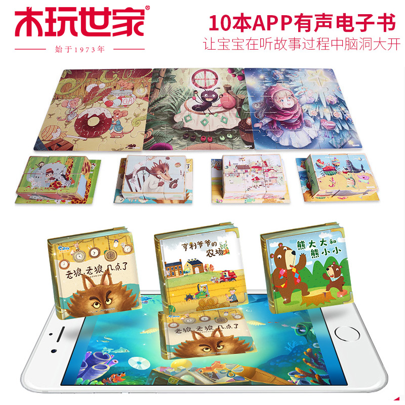 Big Bear and Little Bear (six-sided picture) The tortoise and the hare race (small particle puzzle) The little ant wears shoes (small particle puzzle) Little crabs don't fight (six-sided picture) The party in the forest (six-sided picture)