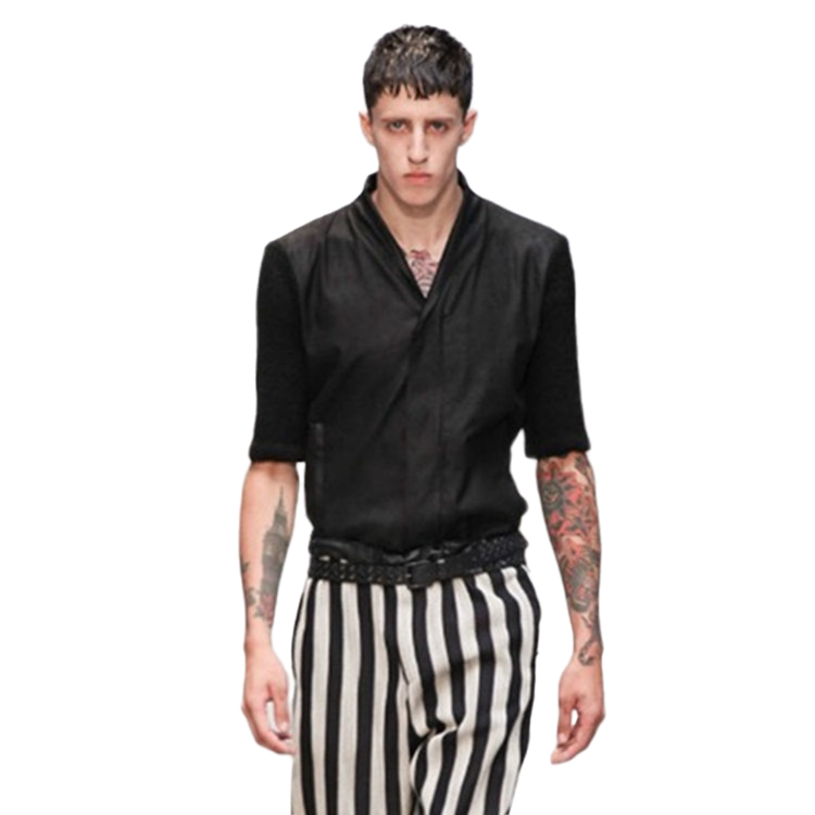 Men's Shirt Splicing Collision Color High-end Real Silk Blend 2022 Spring New Body No Collar Free Ironing Long Sleeve Shirt