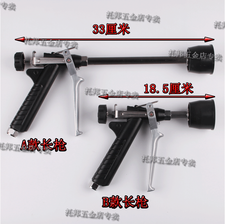 A long shot 33 cm B with a short gun 18 5 cm C metal head spray gun