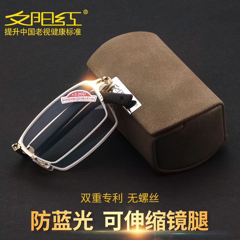 Sunset red anti-blue light old flower glasses male and female folding portable fashion ultra light anti-fatigue old light far sight glasses