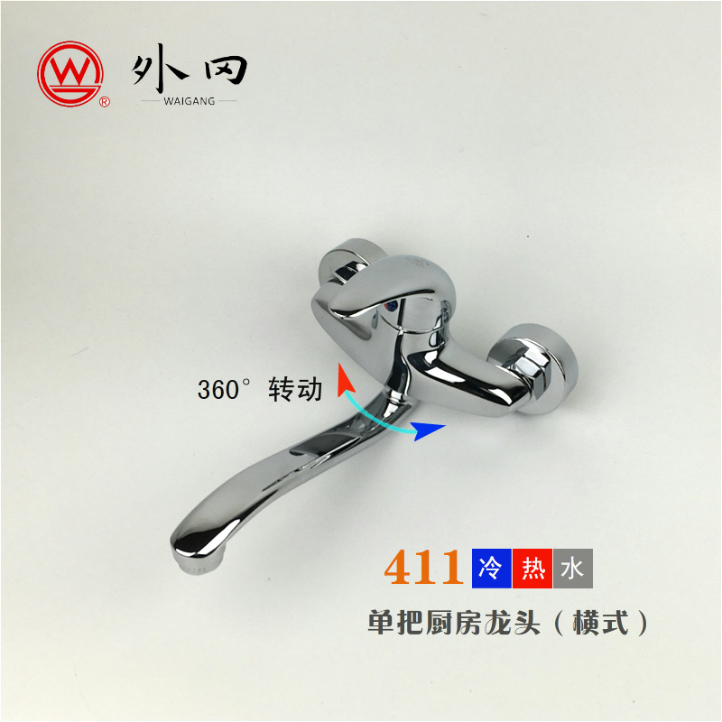Upper Overseas Oka Bathroom Kitchen Horizontal hot and cold water horizontal entrance wall mounting lengthened turning sink tap 411