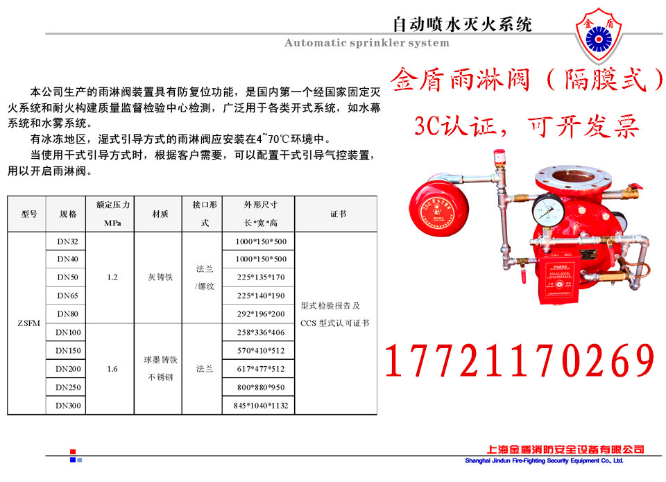 Shanghai gold shield fire rain shower alarm valve ZSFM-150 type diaphragm type rain shower valve 3C certified